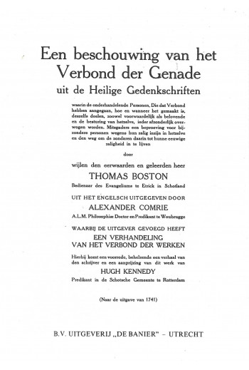Thomas Boston - Een beschouwing van het Verbond der Genade uit de Heilige Gedenkschriften. Naam op titelblad, verder in prima (nieuw)staat.
