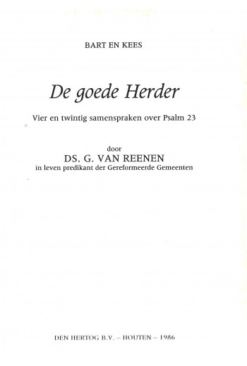 Ds. G. van Reenen - De goede Herder - Bart en Kees in 24 Samenspraken over Psalm 23. Blz. (licht)vergeeld, verder in prima staat.