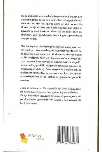 Opvoedingsreis. Een inspirerend boek over bijbelse opvoeding, door Frans en Andrea van Hartingsveldt. Het boek biedt praktische inzichten en handvatten voor ouders die hun kinderen willen opvoeden volgens bijbelse principes.
