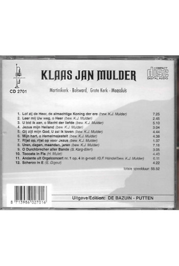 Klaas Jan Mulder 1. Bevat orgelmuziek opgenomen in de Martinikerk Bolsward, Grote Kerk Maassluis. In goede conditie.