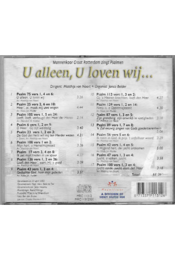 Mannenkoor Groot Rotterdam o.l.v. Matthijs van Noort zingt Psalmen - U alleen, U loven wij... Organist: Janco Belder.